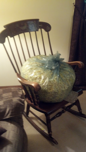 Yes, that's a lot of popcorn. Apparently he had two bags but dropped one of at his family's house. My question is, how in the world are we going to even eat half of this?!? Well, I guess I know what I'm having for breakfast!